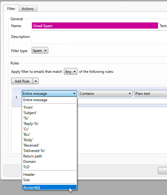 Click Add Rule and then in the first drop down menu select Account(s)