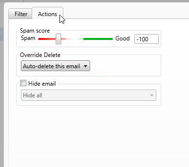 Click the Actions tab and from the drop down select Auto-delete this email. NOTE: If you don't want to auto-delete, but instead just mark emails as spam so you can first check them over, then leave the setting as Don't override delete.