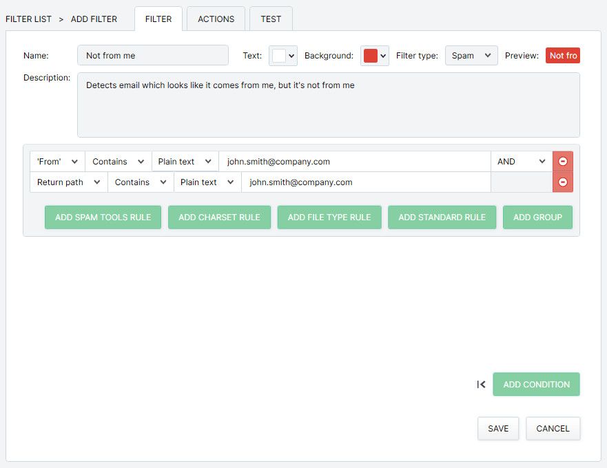 Filters allow you to make MailWasher Pro tag email as good, neutral or spam.